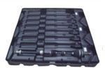 材质:7mm黑色HDPE,托盘尺寸:1160*1130*110mm 设计保护橡胶部位,两款传动轴共用托盘,降低成本,旋转180度,降低托盘高度