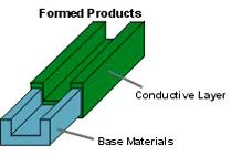 | 将高分子导电聚合物,纳米材料复合在塑料表面,使产品达到导电效果. |