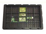 不同规格PCB板共用一托盘,简化车间内周转托盘种类 导电PS托盘 + 隔条 Conductive PS tray + 隔条 通过调节隔条的个数及距离,实现不同的内腔大小,使不同规格PCB板均能合理放置